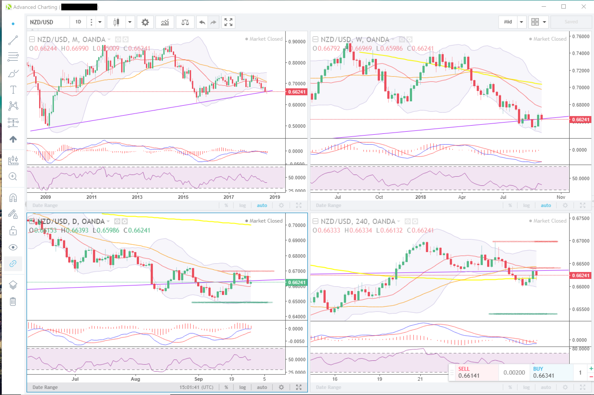 Bearish sentiment short term however I see that on the monthly chart price is at the upward trending support line since around 2009. The doji signifies imbalance of the force of the downtrend so we may see a bounce to the upside. Descending into the weekly and daily charts, we see the initiation of what could be a start of a bearish move towards the 0.65000 level. I would wait until I see obvious entry signals before triggering a position as well as paying attention to money management techniques.