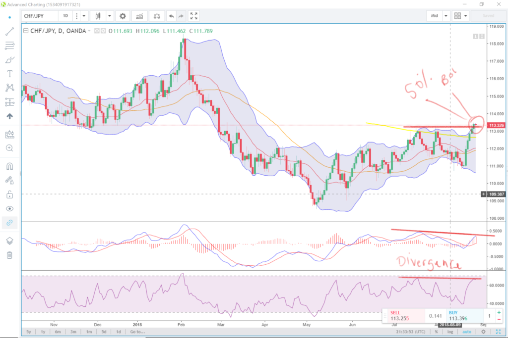 Expecting a slower than usual day on the UK market as it is Bank Holiday. However a market that I’m looking at for potential profit is the CHFJPY by looking to the down side.